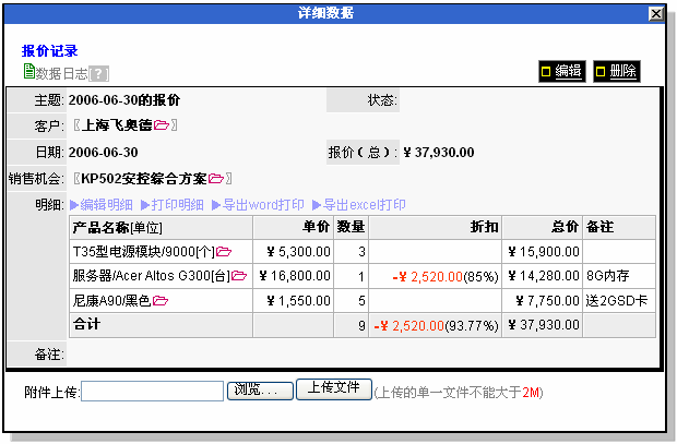 报价单编辑完成后,可点击“查看明细”,如下图:
