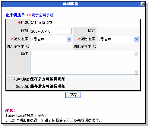 具体操作过程如下: 1新建库间调拨单 新建库间调拨单时,确认调入库和调出库 点击保存。 2 编辑调拨产品明细 点击“明细和执行”按钮,进入调拨单操作界面,编辑调拨明细。如下图: 在这里我们看到,分3步执行调拨。首先是新建调入产品明细。如上图的新建按钮位置。录入产品后,看到如下图所示的产品明细。 双方库管确认 录入调拨明细后,需要双方的库管确认。如下图: 调入库管和调出库管分别点击确认。双方库管确认后,“执行调库操作”的按钮出现链接。 注意:如果在确认时出现核对库存的提示,说明调出库的库存小于需要调入的量。这种情况下,可以修改调入和调出库,重新确认;或者修改调拨明细,重新确认。 确认执行 只有当双方的库管都确认后,“执行调库操作”的按钮才出现链接。如下图: 点击执行调库操作,库间调拨完成。 库存调拨单库管撤销确认的功能 说明 在库存调拨确认执行之前,出库库管和入库库管均可撤销自己对调拨单的确认。 在调拨遇到问题需要中止时,可以撤消后修改或删除调拨单数据。 注意:这个撤销功能是出入库库管的撤销,与调拨单全单的撤销不同。在于: 出入库库管的撤销发生在调拨单执行前; 调拨单全单的撤销发生在调拨单执行后。 操作 在调拨单内,库管确认的按钮,当库管确认后,即出现允许撤销确认的链接如下: 此界面可实现库管确认的撤销。 |