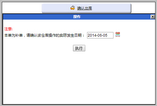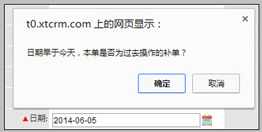 “确定”:订单为补单,同时生成出库单的填单日期和订单的日期保持一致。 “取消”:订单为非补单,出库单的填单日期为点击生成出库单的日期。 出库单的填单日期支持修改,若不是当天,保存时也会出现如上图提示。 如果出库单为补单,确认出库时,出现如下图提示: