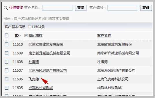 客户“飞奥德”在系统中已经存在。现在我需要通过导入的方式,新建一个联系人到“飞奥德”客户下。 该客户在系统中的助记简称为“飞奥德”。那么我们在模板中“助记简称”字段填写上“飞奥德”和联系人信息即可。 如下图: