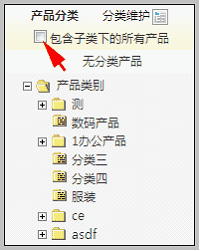 取消“包含子类查询”后,再次查找产品时,将不会再包含子分类产品。