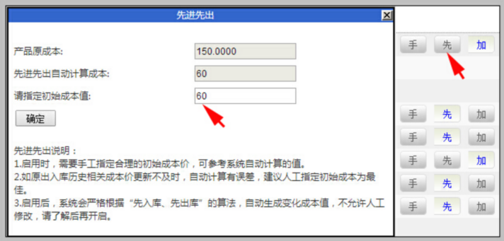 启用后,系统会严格根据“先入库、先出库”的算法,自动生成变化成本值,不允许手动修改,请了解后再开启。