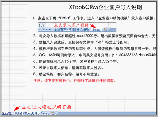 四个导入模板中的说明不同,这里我们以“企业客户精简模板”为例说明。