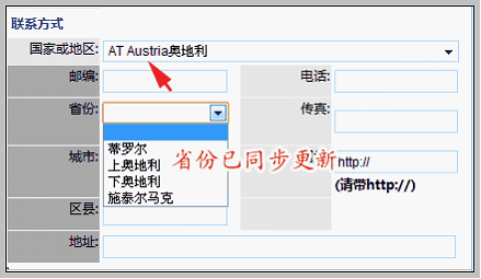 我们选择国家“奥地利”可看到省份选择内容已经同步更新,我们直接选择即可。
