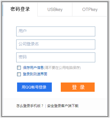 进入云登录页,需要输入用户名、公司登录名、密码。