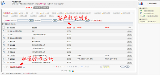 进入批量客户共享转移界面 在批量客户共享和转移界面,可看到: