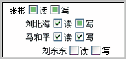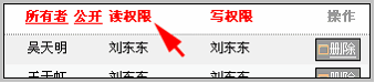 所有者、公开、读权限、写权限,均以红色显示,突出该列表的权限展示功能。