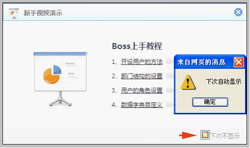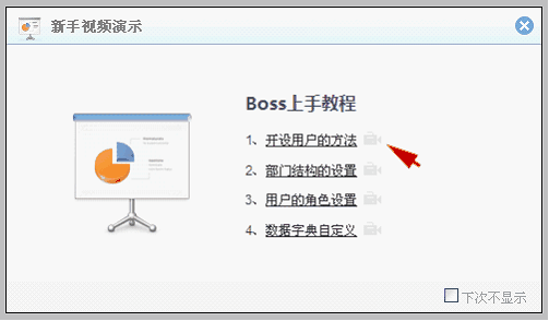 勾上以后,登录后就不再提示,如想再次查看,在工作台左侧“视频演示”,如下图: