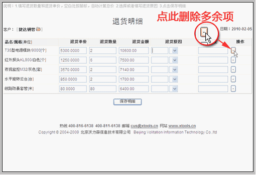 编辑退货单明细 在上一步退货单建立后,自动把订单明细中全部产品加入退货明细。编辑退货单明细的方法是:在退货单操作区域点击“编辑明细”。 进入退货单明细编辑界面,注意:这里的退货明细是自动从订单明细中读取全部的数据,操作时,只需要删除不必要的项目即可。具体如下: 只保留退货产品,修改退货数量,并填写退货原因。 保存明细。 至此,退货明细编辑完成。下面要做的是:使用退货单,管理退回产品的入库情况、管理退款情况。 管理退货入库 如上图所示,在明细编辑完成后的退货单底部,点击“生成退货入库单”的操作按钮。 点击后,系统根据退货单明细生成退货入库单。 等待库管人员确认该入库单入库。 记录退款 在退货单中,点击“新建退款记录(负回款)”按钮。 新建退款和新建回款的方法类似,区别在于:退款是用负回款实现的。如下图: 即:记录退款时必须在金额中带有负号。退款记录后,将在本订单视图中的回款模块中显示,如下图所示。 |