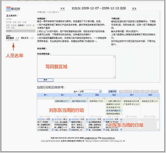 写回复 看过下级用户的周报后,必要时写回复。下级用户看到上级回复后,可补充回复。 回复内容往复记录,如下所示: