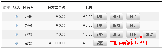 需要注意的是:在合同订单列表中的操作位置,有时会看到一些特殊的操作按钮。比如“发货”按钮,如下图: