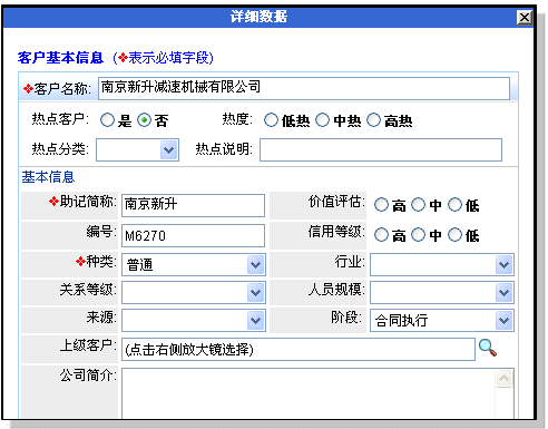 注意:这里的编辑界面只能编辑客户信息本身,而不能编辑客户的联系人、日程行动、订单等数据