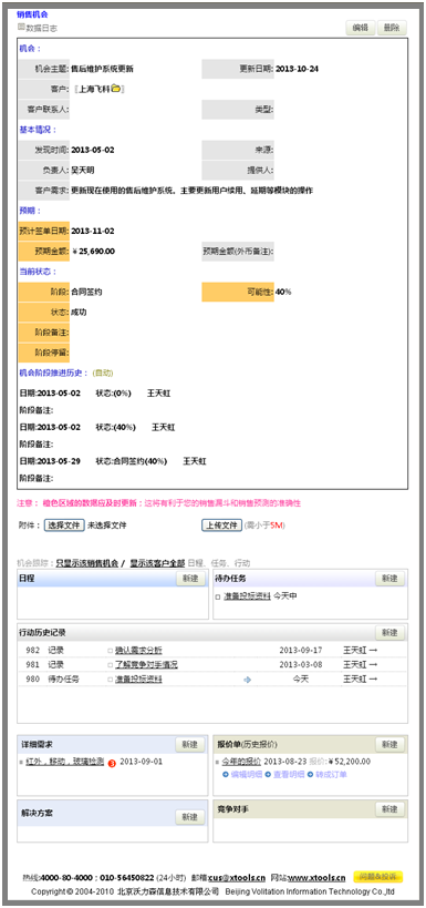 在机会的跟踪部分,不仅可以察看和该销售机会有关的跟踪,还可以看到和该客户相关的全部跟踪情况。