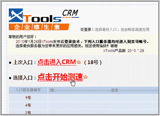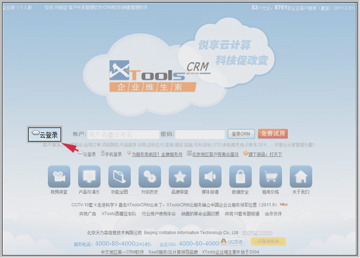 说明 采用云登录,可以让客户登录后选择最快的服务器。意味着,用户在使用时不再受到服务器的局限,而可以任意选择。不管从哪个服务器入口,均可实现正常应用。 操作 在XTools公司网站首页点击云登录