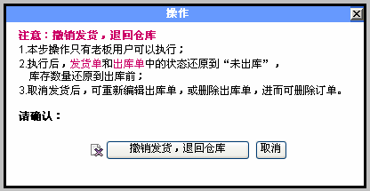 点击从撤销发货,退回仓库的按钮,执行操作。