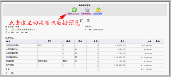预览功能 预览显示效果时,可随机从相应数据表中读取数据,展示真实效果,满意后,点击重新编辑模板,保存该修改。 IE打印支持图形 如果在打印模板中上传了图形,则只能在IE打印时支持,导出到word打印和导出到excel中打印不支持图片。 |
