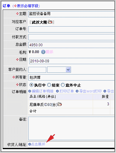 图中箭头所指部分的信息,可以在打印订单时一起打印。需要提醒您的是,这个功能并不适用于所有的企业,有些公司需要使用专门的发货单,或专门的快递单,则不需要在订单中再打印收货人信息。所以订单打印模板中,这些内容属于选用范畴。 |
