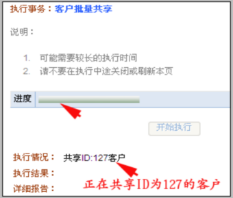 点击执行结果后的“关闭本窗口”钮退出本页面,批量客户共享/转移页面自动刷新,可看到共享操作已成功。.