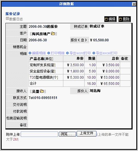 报价单增加了收件人、收件人联系方式、报价人、制表人、交付说明、付款说明、包装运输说明等字段。对报价单的应用扩展范围,可适应到作为邀约的报价单应用。