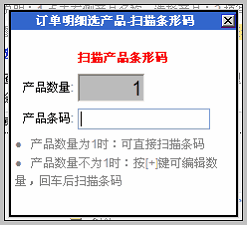 如果当前产品数量为1,则可以直接扫描条码; 如果当前产品数量不为1,则按键盘上的[+](主键盘区域的+和小键盘区域的+均可),即可切换到数量位置,输入数量后,回车,继续扫描条码。 简单的说,技巧是:为1时直接扫;不为1时按加号,改了数量再扫条码。 当然您也可以使用鼠标在数量和条码之间切换焦点,只是比使用键盘的[+]实现切换麻烦一些。